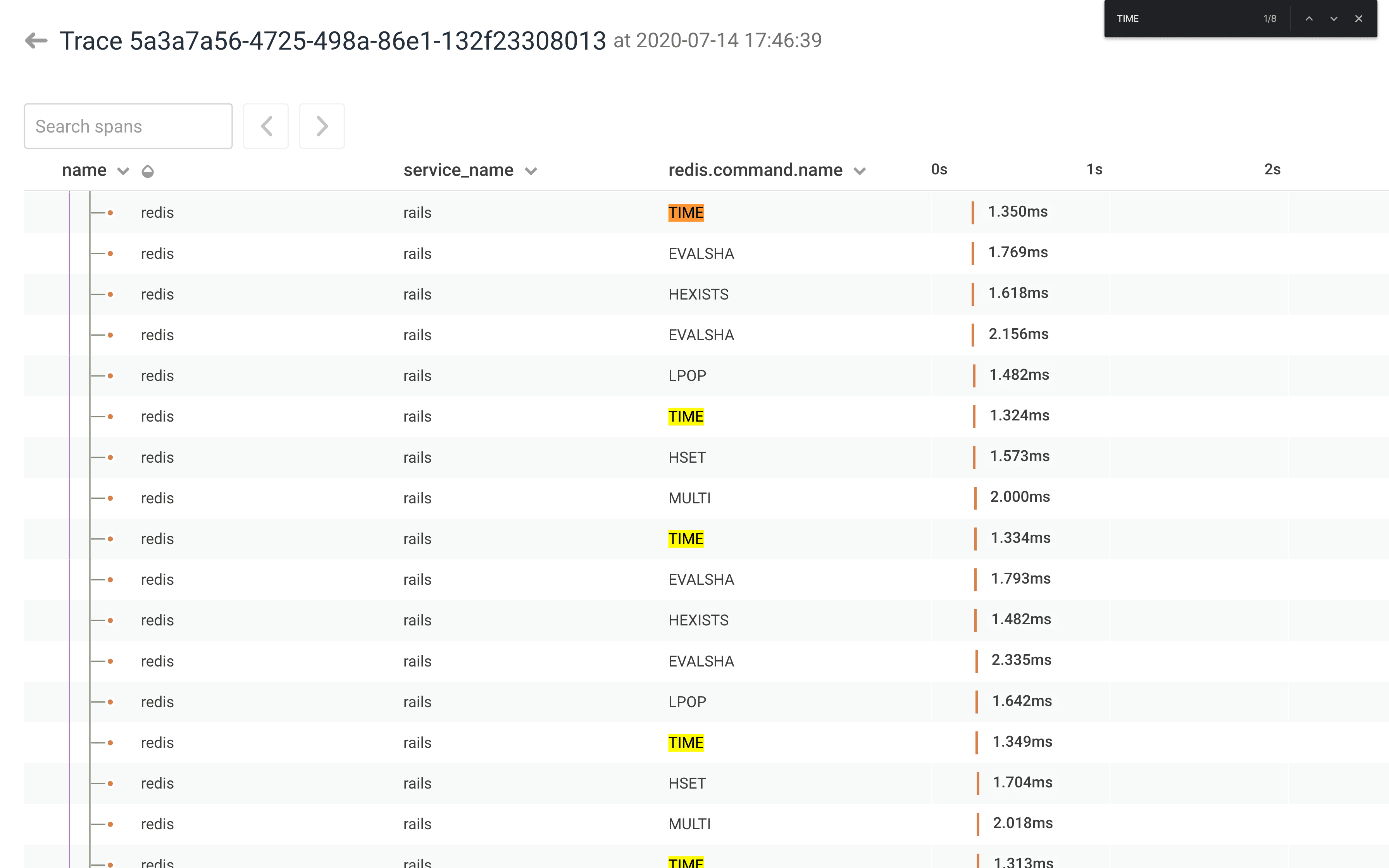 ].freezeWe can see in Honeycomb’s trace view that the TIME command shows up a lot: