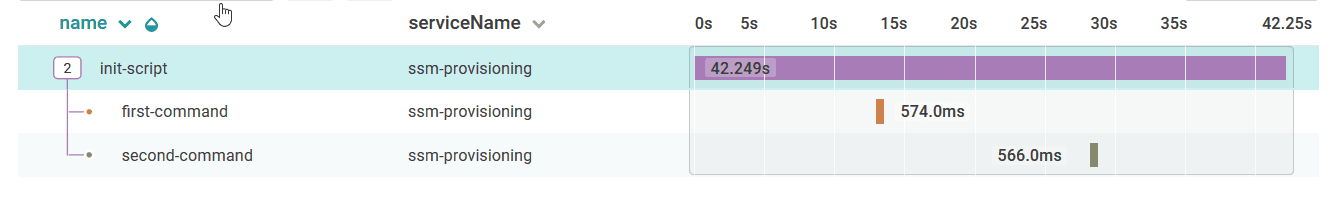 Initially, we deployed the change to our lowest application environment and compared the performance delta.One of our key performance metrics is time from instance launch until application code begins installation. Our logs made this difficult to calculate for a single instance and impossible to measure at scale. Our trace data, however, made this simple: measure what matters to your users.