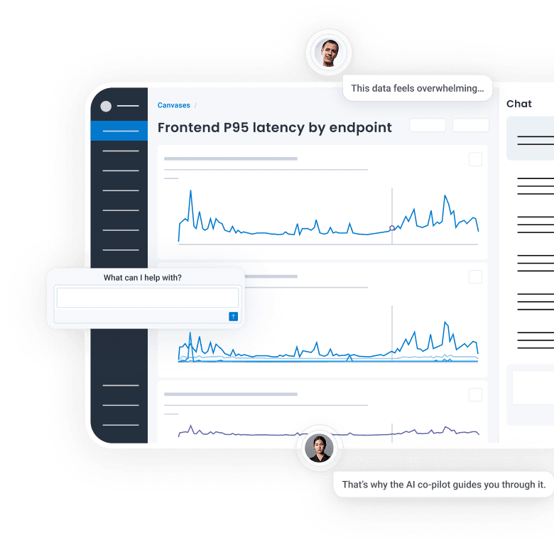 Canvas supercharges your observability practice with an AI assistant to guide your investigations and an interactive notebook for visualizing query results. Ask any question and Canvas will explore your data instantly to find the right next steps.