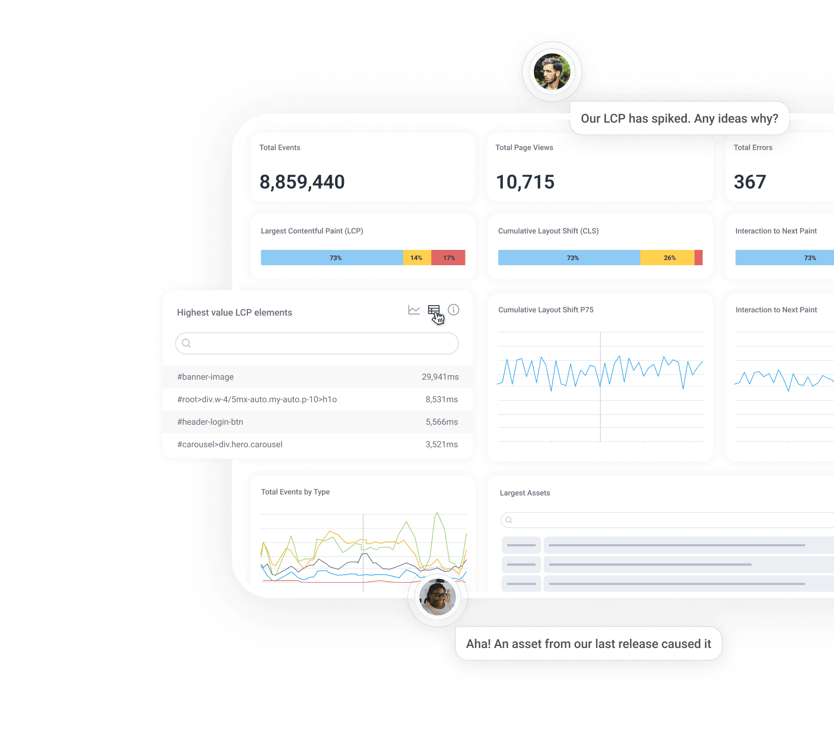 Debug Core Web and Mobile Vitals with real-time visualizations that reveal exactly what’s affecting them—in just a few clicks.
