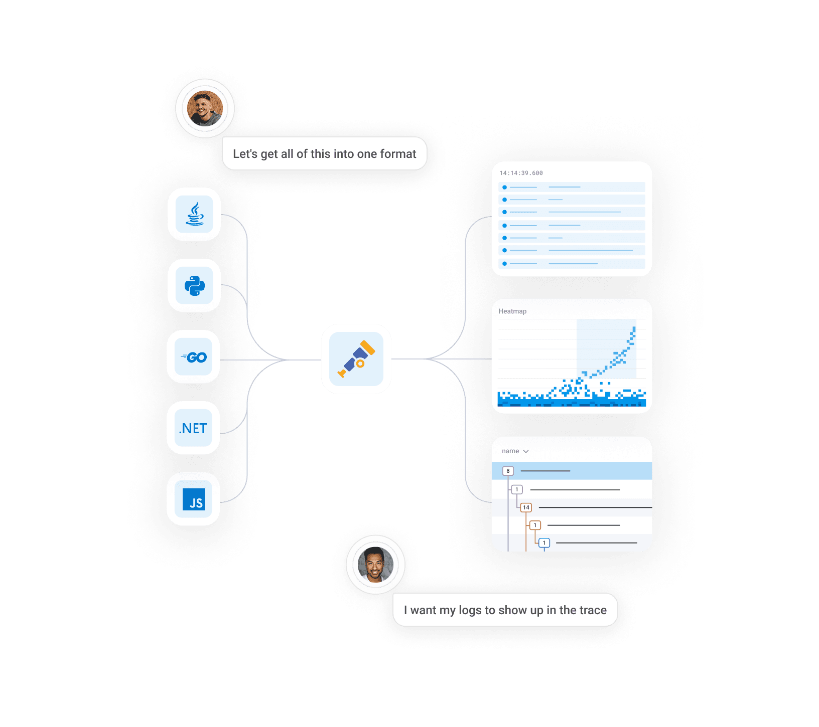 Whether you’re just starting or scaling your implementation, our step-by-step guides, best practices, and detailed examples simplify the process for developers and platform engineers alike. Backed by our expertise as active OpenTelemetry contributors, the documentation empowers you to instrument, optimize, and get value from your telemetry faster—so you can focus on delivering exceptional software. Send data with OpenTelemetry.