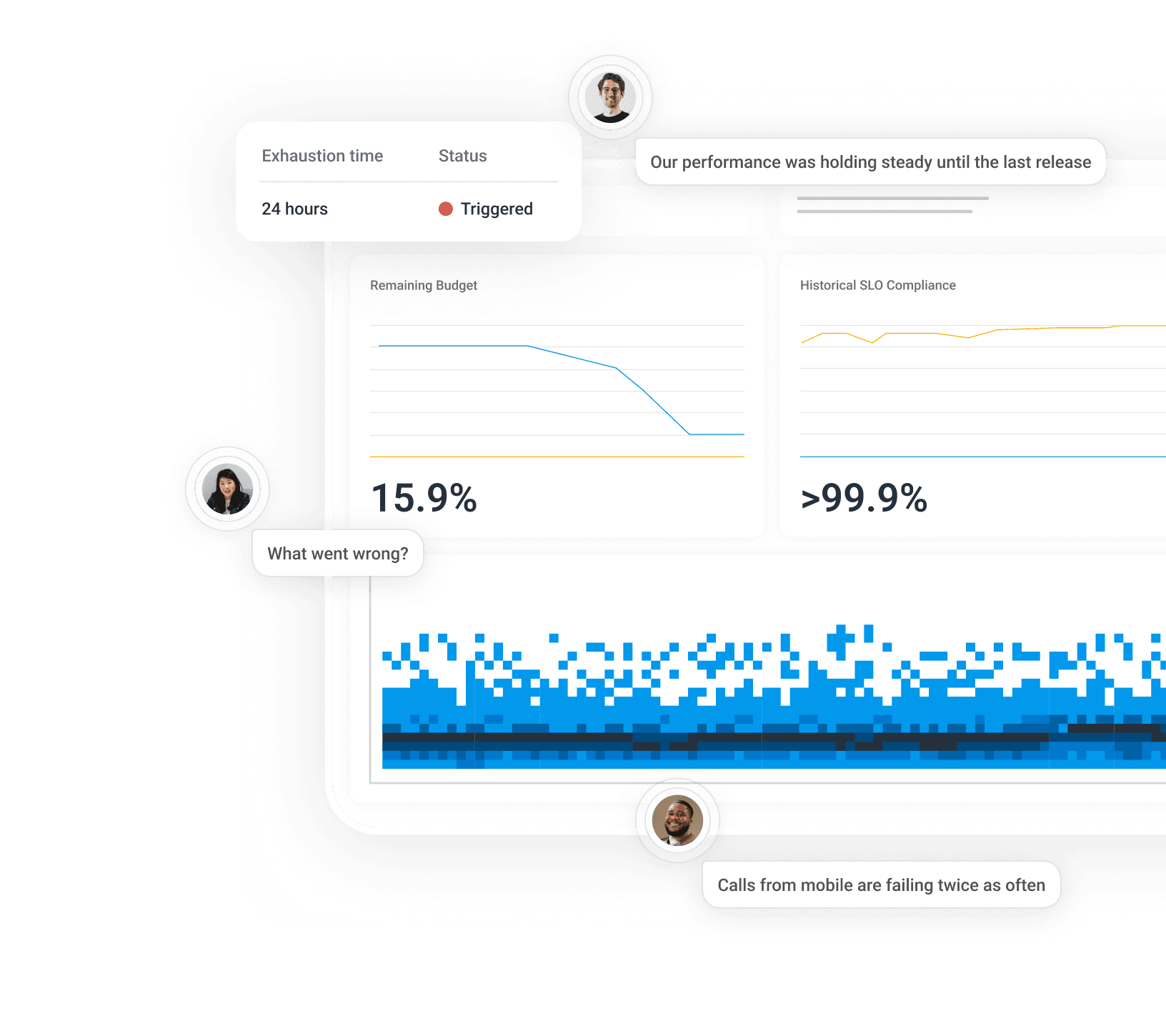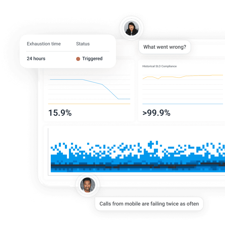 Create SLOs that reflect your critical customer experiences. Teams have the clarity they need to prioritize issues, simplifying collaboration and reducing decision bottlenecks across teams.